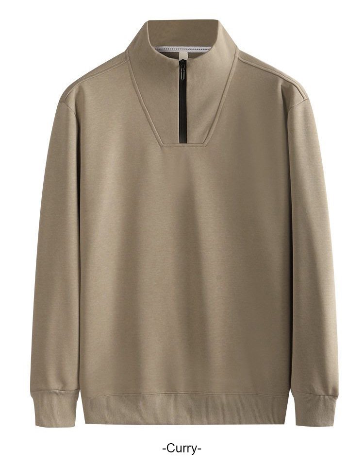 Fashionable Stand Collar Half Zip Chinese Cotton Sweatshirt